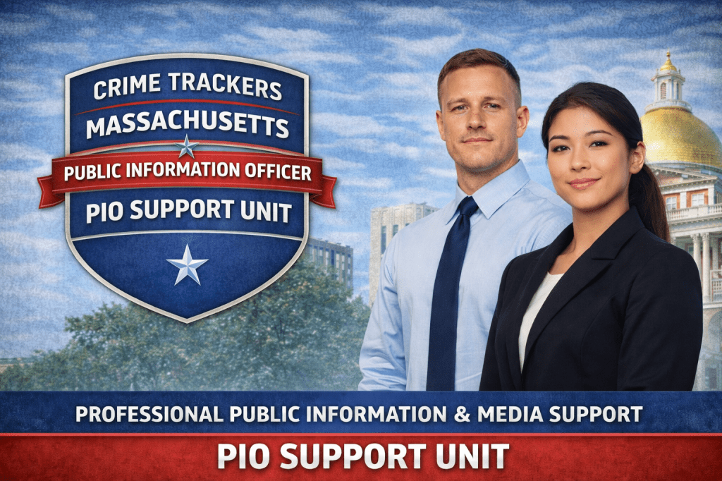 The Crime Trackers Massachusetts Public Information Officer (PIO) Support Unit provides trained public information and media relations personnel to law enforcement agencies across the Commonwealth on a per diem or as-needed basis.